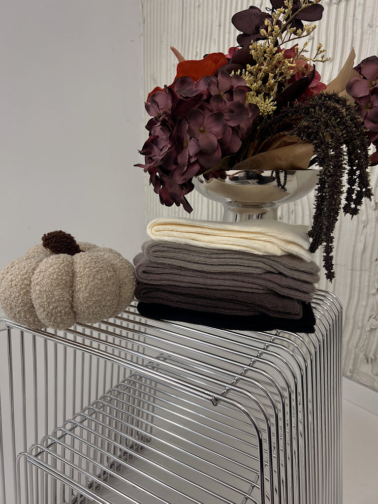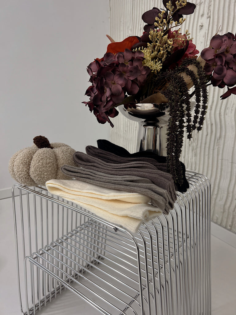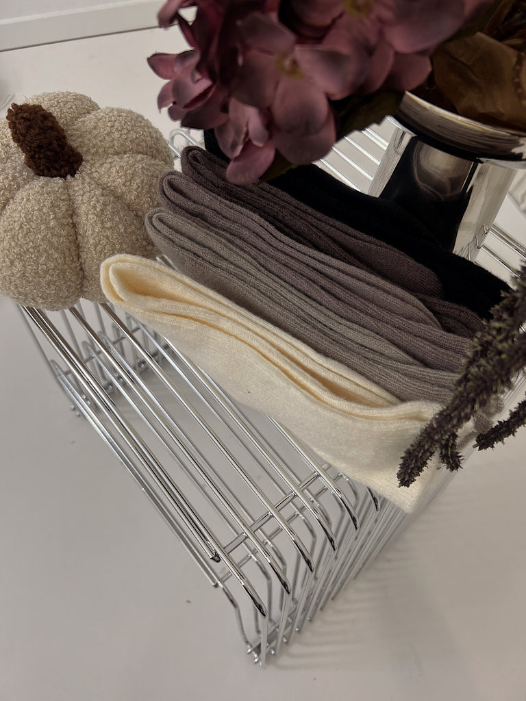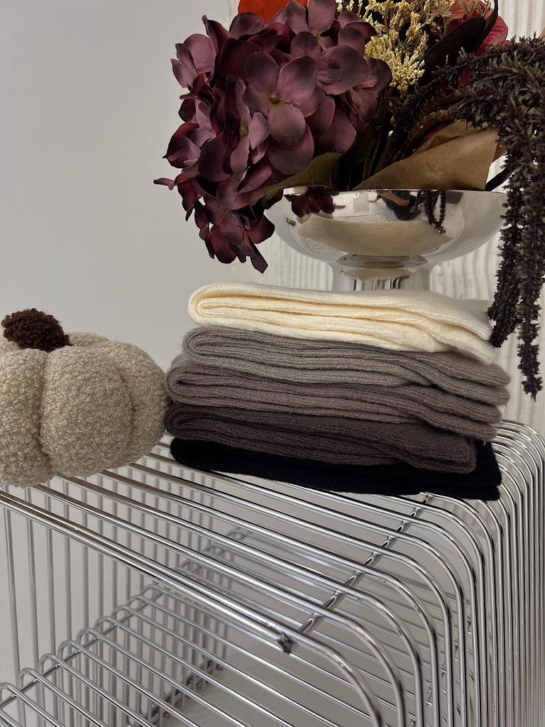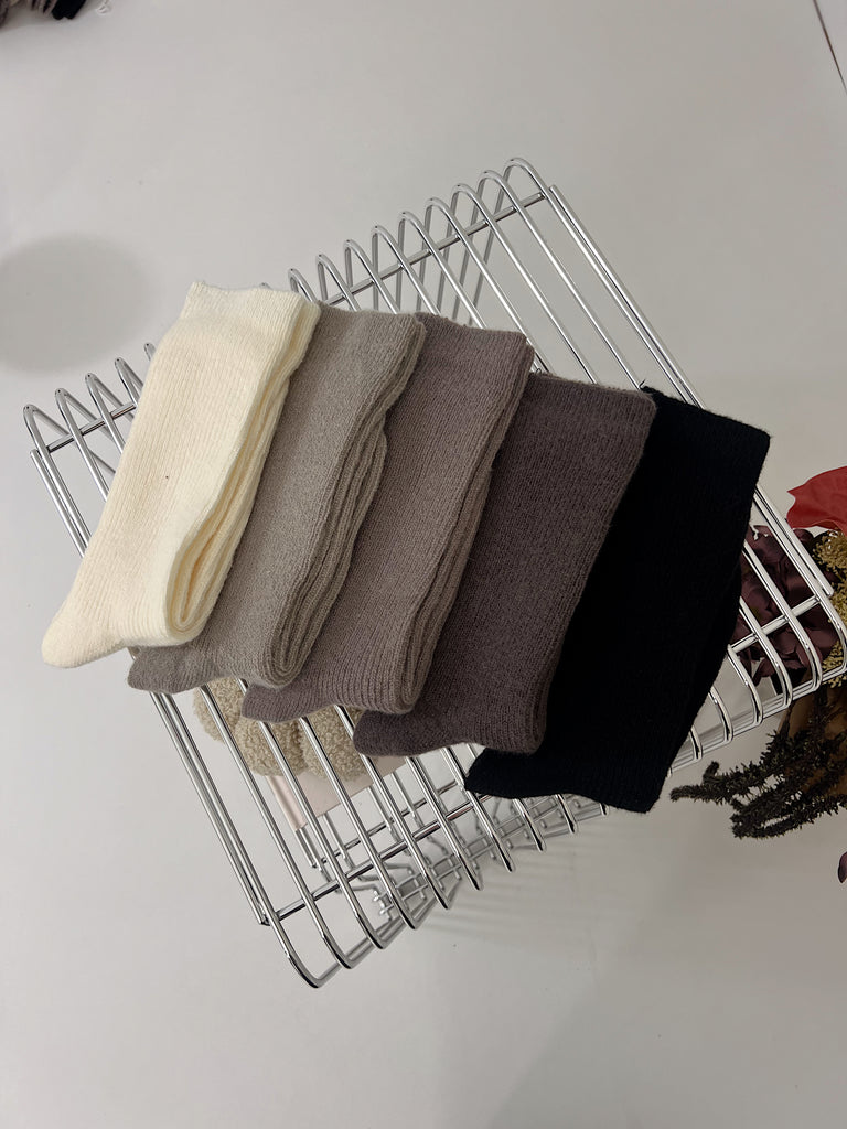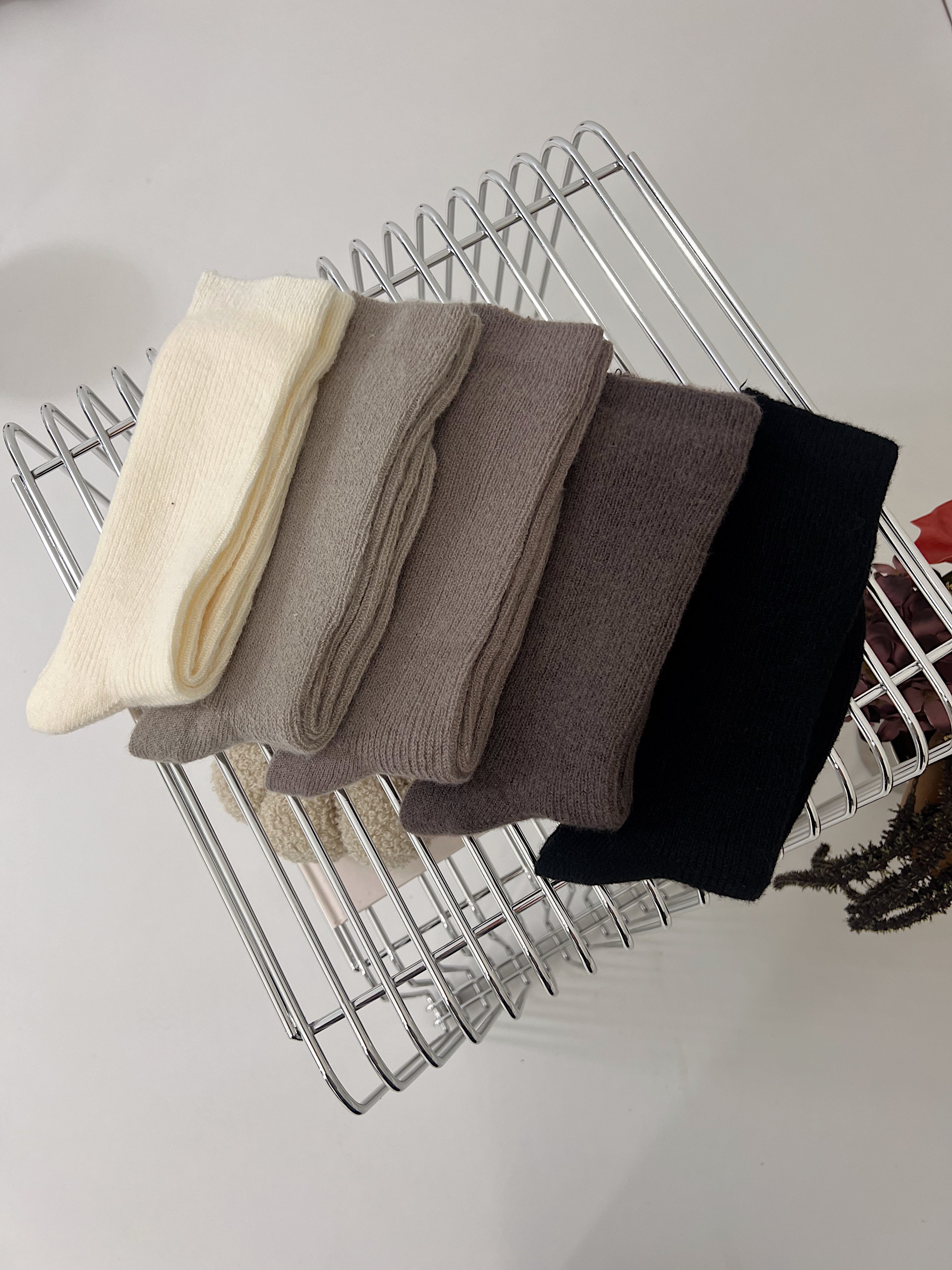 5-pak skarpetek z wełny merino w kolorach: ecru, ciemny brąz, jasny brąz, szary i czarny.