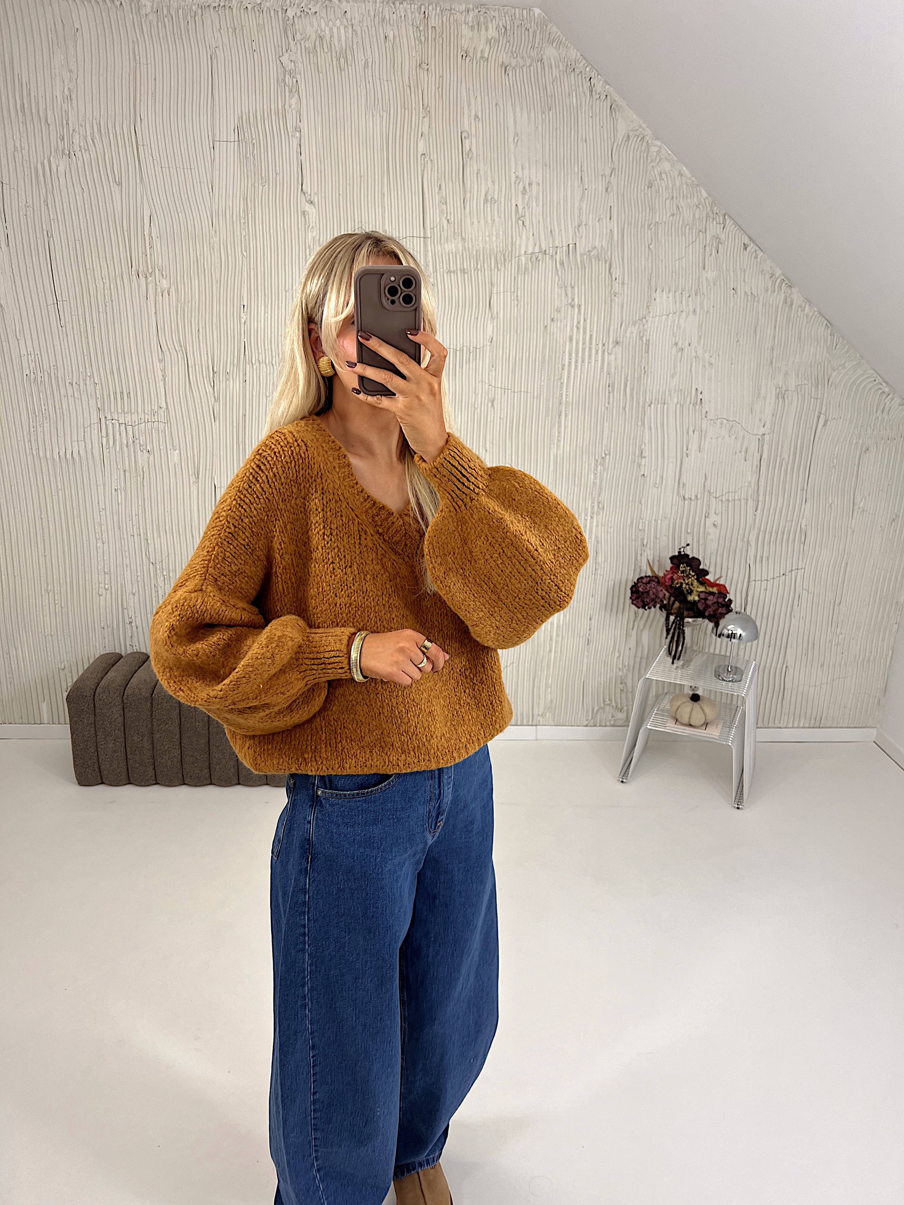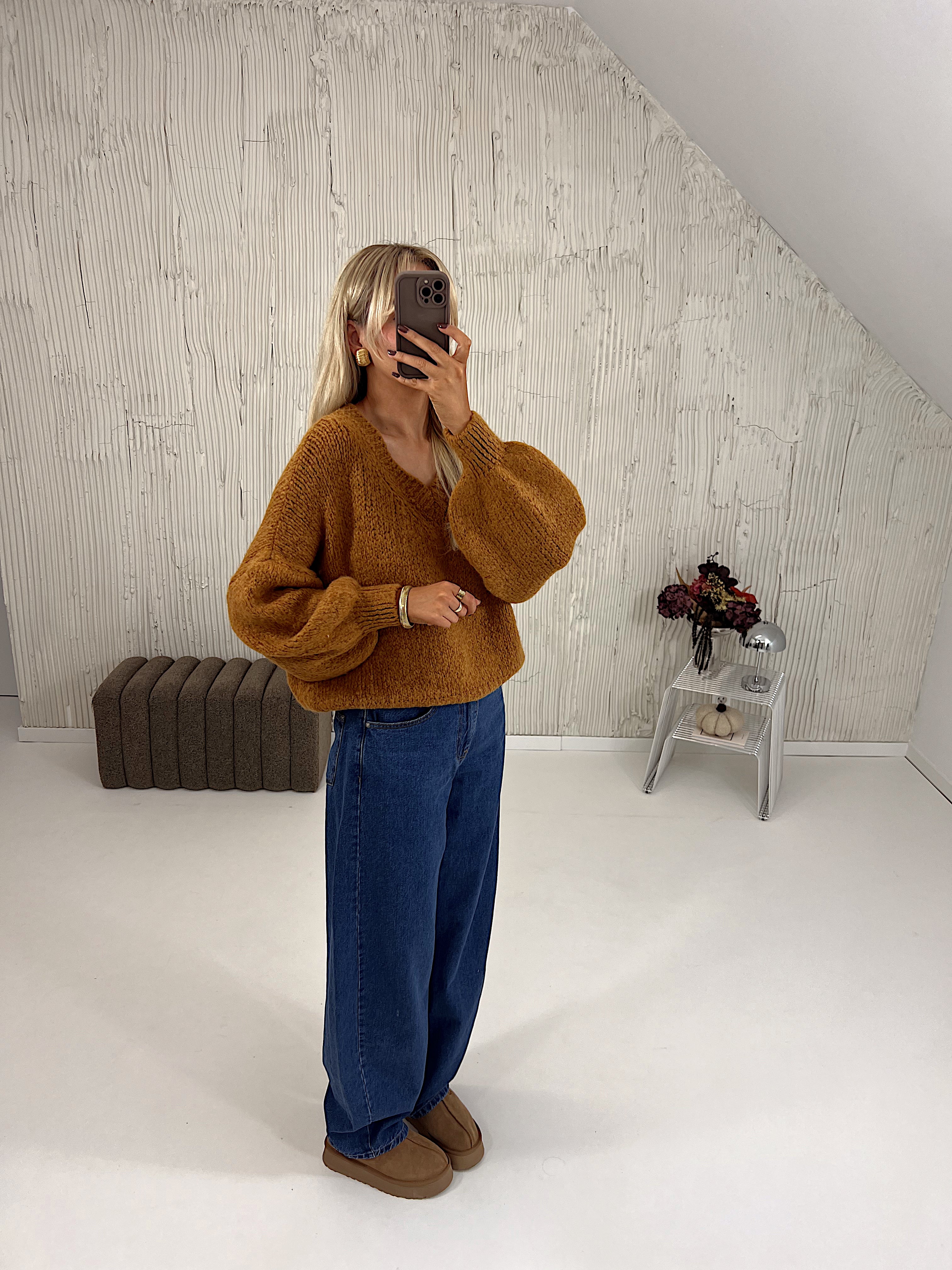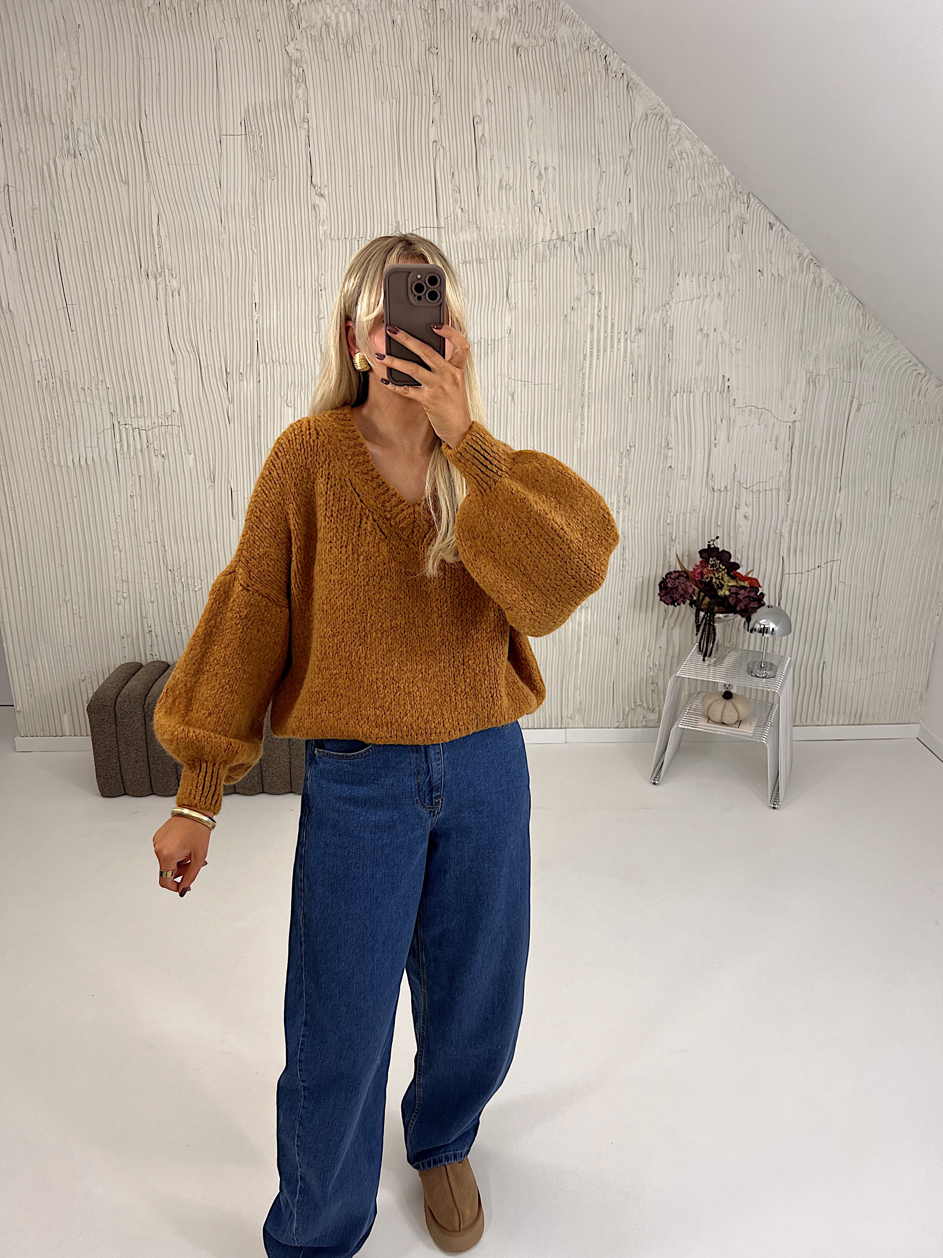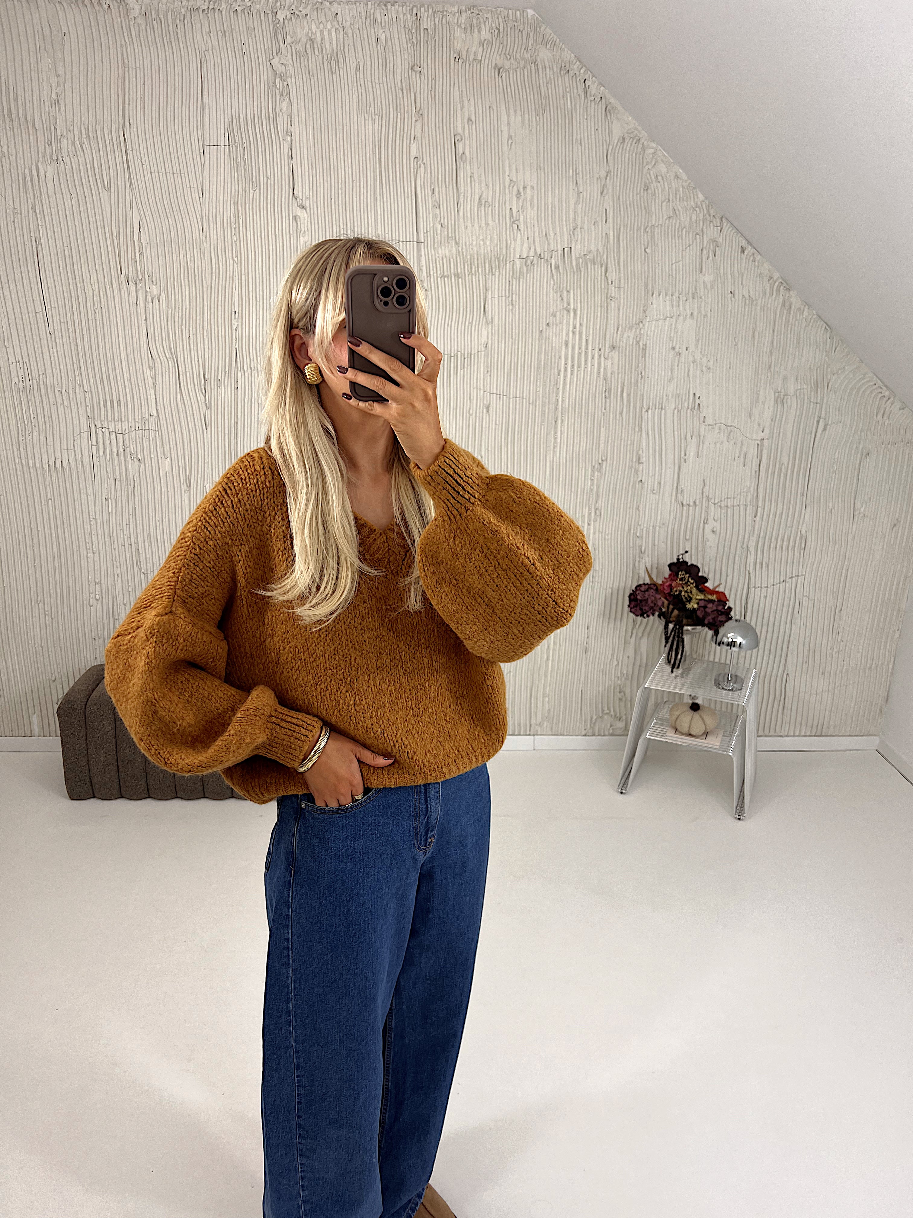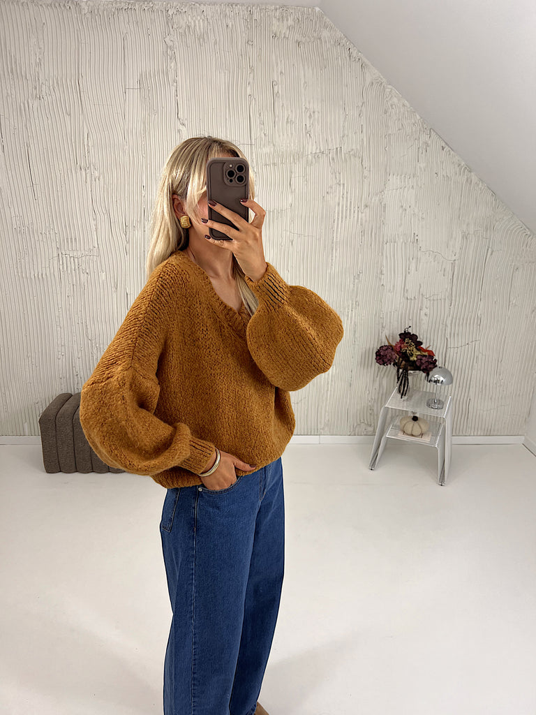 Sweter Mulberry V-Neck Salted Carmel